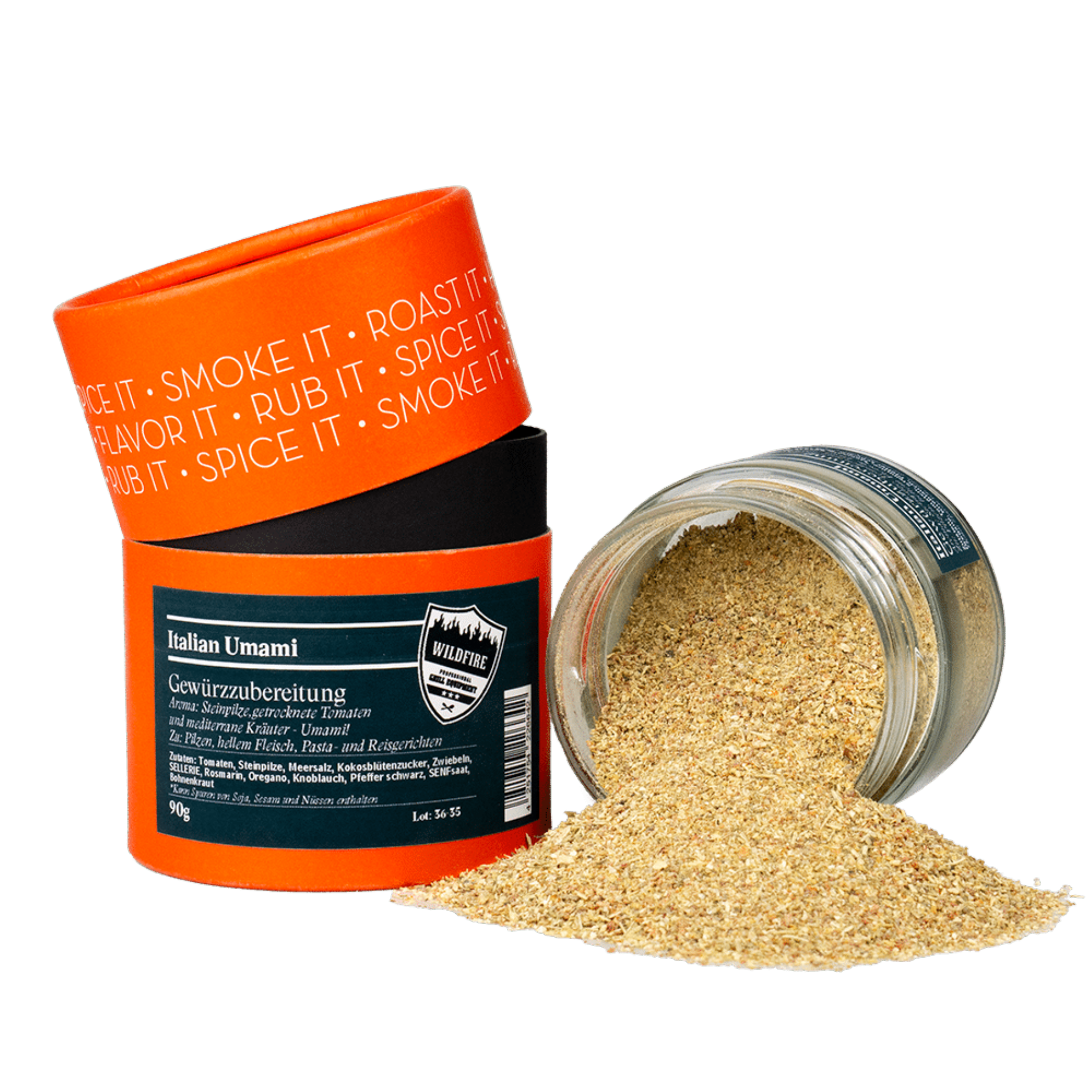 Im Rahmen der Partnerschaft zwischen der Big Green Egg Deutschland GmbH und der Gewürzmühle Rosenheim ist die Wildfire Gewürzedition entstanden, die neben klassischen Rubs, einzigartige Mischungen wie etwa das Wildfire ‚Yuzu Curry‘ oder den Dessertrub ‚Honeyballs‘ umfasst. Natürlich darf in der Wildfire Linie ein mediterraner Klassiker für Fleisch-, Pilz-, Reis- und Pastagerichte nicht fehlen. So entstand die Gewürzzubereitung ‚Italian Umami‘.